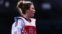 Выступавшая за Россию, Екатерина Ким не смогла продолжить борьбу за бронзовую медаль из-за травмы правой руки, полученной в ходе предварительного поединка, в котором ей противостояла хорватка Ana Zaninovic, ставшая обладательницей серебряной медали I Европейских Игр.