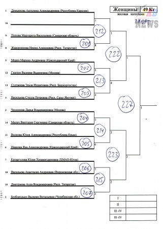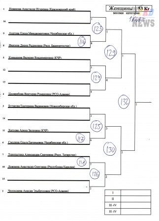 Женщины до 46 кг, до 49 кг, до 53 кг. |