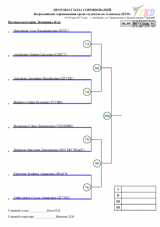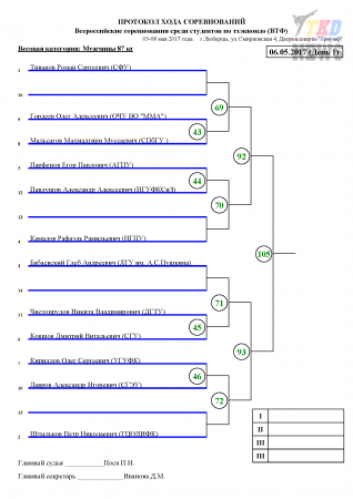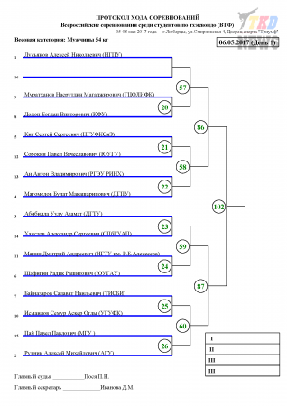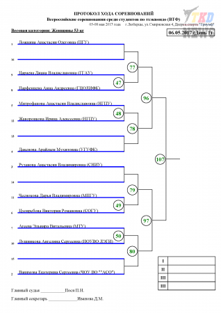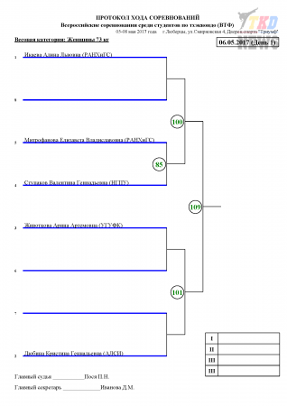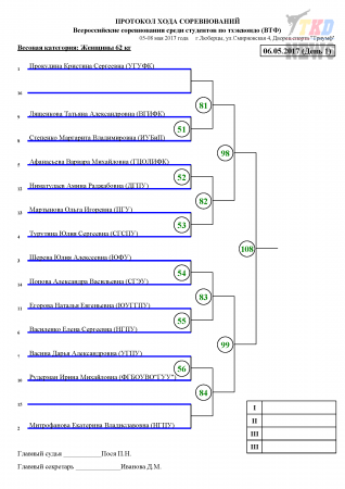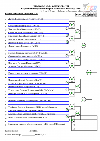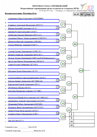 Всероссийские соревнования среди студентов по тхэквондо ВТФ, Люберцы-2017. День первый. Сетки.