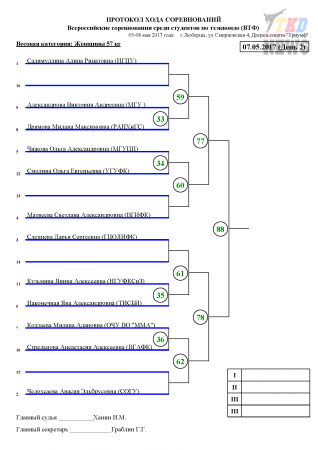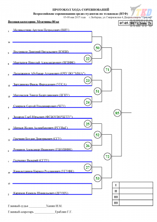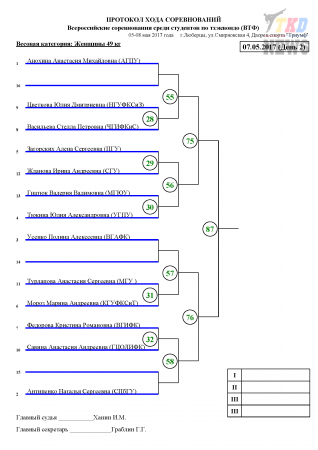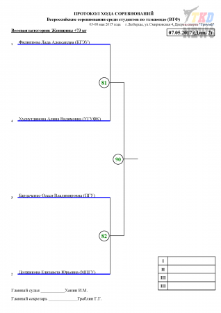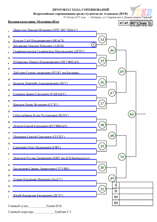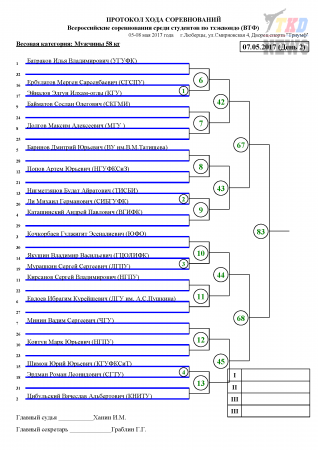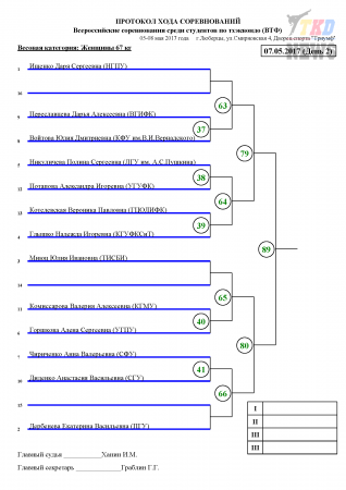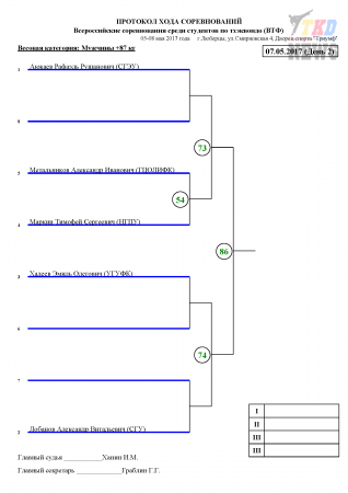 Всероссийские соревнования среди студентов по тхэквондо ВТФ, Люберцы-2017. День второй. Сетки.