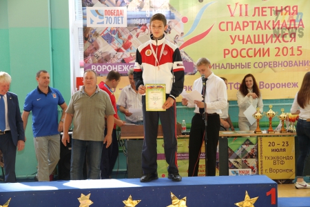 Сегодня, после двух дней напряжённых поединков, завершились соревнования по тхэквондо ВТФ финального этапа Спартакиады учащихся России 2015 года. Было разыграно десять комплектов наград и определены лучшие в командном зачёте.