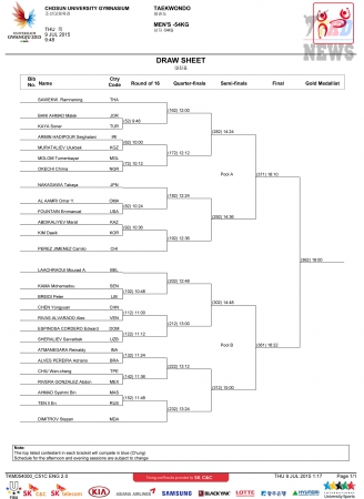 XXVIII Всемирная летняя Универсиада. Тхэквондо. День третий. Мужчины до 54 кг. Сетки. (Размер: 195.1 Kb. Скачиваний: 40)