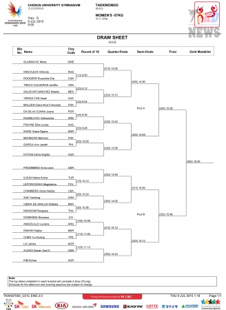 XXVIII Всемирная летняя Универсиада. Тхэквондо. День третий. Женщины до 57 кг. Сетки. (Размер: 195.19 Kb. Скачиваний: 43)
