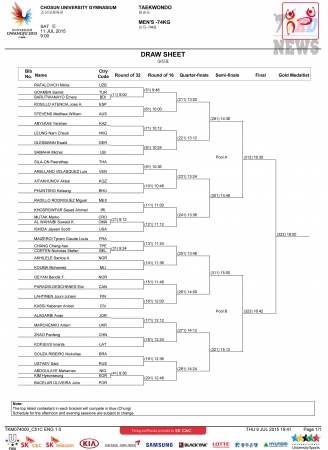 XXVIII Всемирная летняя Универсиада. Тхэквондо. День пятый. Мужчины до 74 кг. Сетки. (Размер: 196.24 Kb. Скачиваний: 41)