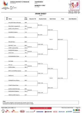 XXVIII Всемирная летняя Универсиада. Тхэквондо. День пятый. Женщины свыше 73 кг. Сетки. (Размер: 194.44 Kb. Скачиваний: 37)