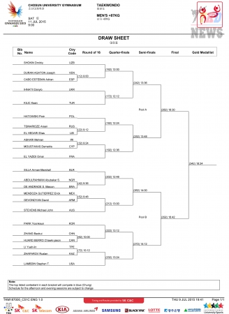XXVIII Всемирная летняя Универсиада. Тхэквондо. День пятый. Мужчины свыше 87 кг. Сетки. (Размер: 194.74 Kb. Скачиваний: 43)