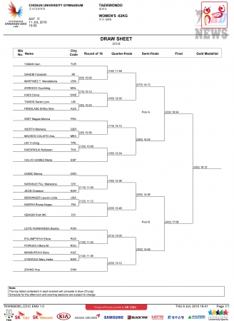 XXVIII Всемирная летняя Универсиада. Тхэквондо. День пятый. Женщины до 62 кг. Сетки. (Размер: 194.92 Kb. Скачиваний: 37)