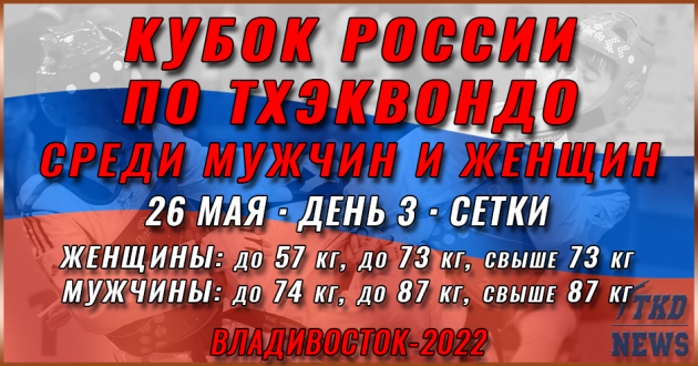 В заключительный, пятый день соревнований на Первенстве России по тхэквондо ВТФ среди кадетов, которое проходит в городе Калининград, будут разыграны оставшиеся четыре комплекта наград. Борьба за медали пройдёт в весовых категориях у юношей до 49 кг и до 53 кг, у девушек — до 33 кг и до 41 кг. Прямые трансляции и сетки заключительного дня ...